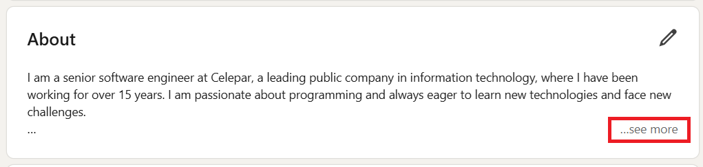First, go to your LinkedIn profile page, and in the About section, click to expand the text.