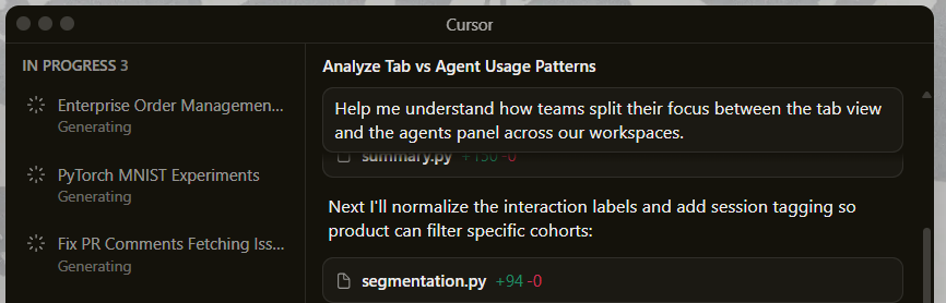 You can ask one agent to create a feature, another to write the tests, and a third to refactor an old module — all simultaneously.
