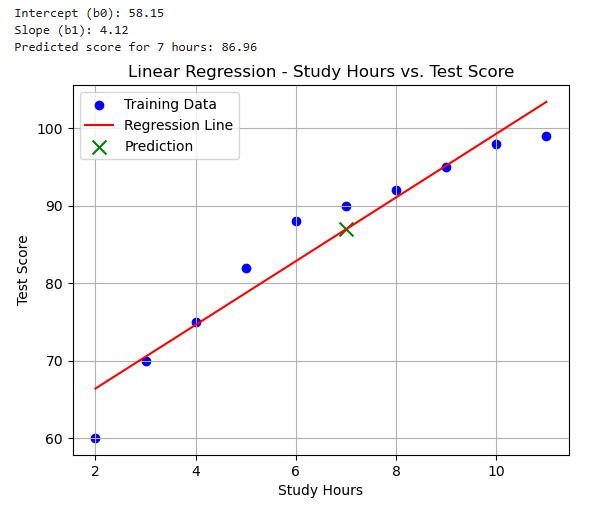 Test Score (y) = b0 + b1 * Study Hours (x)